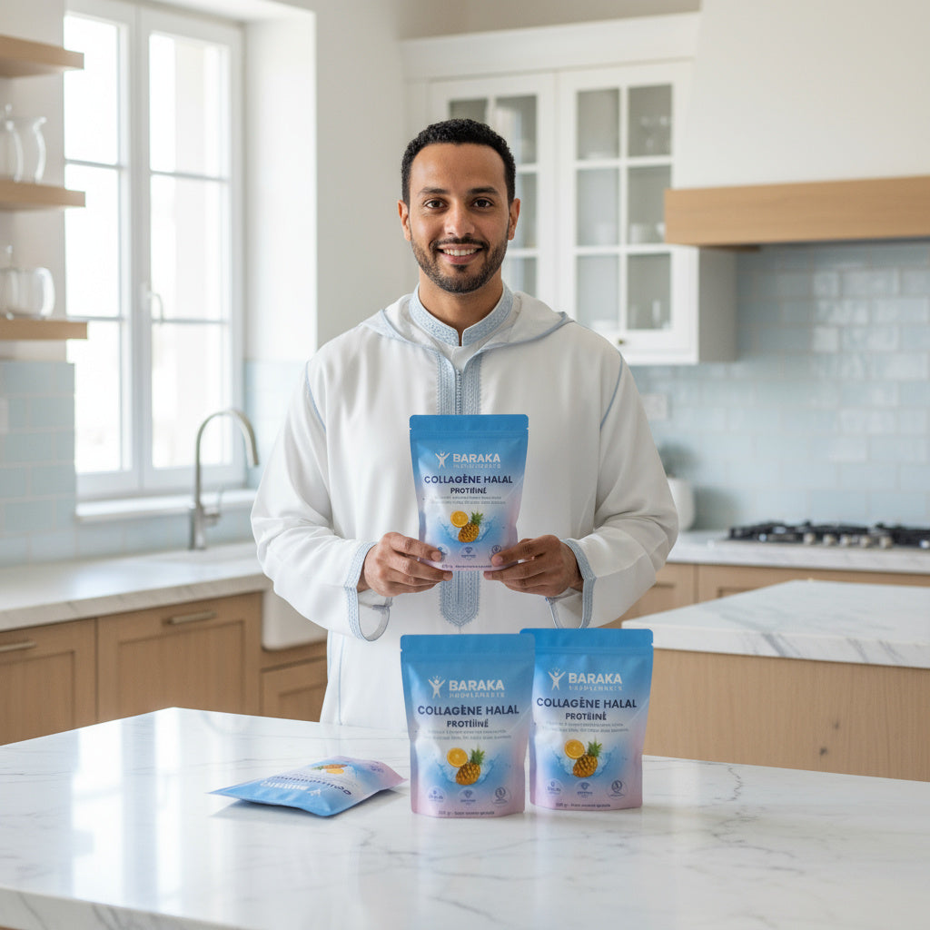 Contrairement à de nombreux compléments de collagène sur le marché, le Collagène Baraka Supplements est certifié 100 % Halal, garantissant le respect des normes alimentaires islamiques les plus strictes.